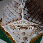 Į prikaistuvį supilame vandenį, medų ir cukrų. Kaitiname, kol cukrus ištirpsta. Sudedame sviestą, maišome, kol jis ištirps. Nukeliame nuo ugnies, paliekame šiek tiek atvėsti. Tuomet įmaišome prieskonius ir kepimo miltelius.  Sumaišome pravėsusį sirupą su miltais, minkome, kol susiformuos vientisa tešla. Ją suvyniojame į maistinę plėvelę ir padedame į šaldytuvą, kad atvėstų (galima palikti visai nakčiai). Išimame iš šaldytuvo, perminkome, kad įgautų elastingumo, iškočiojame plonai, išpjaustome namelio dalis.  Kepame įkaitintoje iki 180 C orkaitėje apie 10-12 minučių, kol gražiai paruduos. Paliekame atvėsti ir tuomet galime dekoruoti bei klijuoti.