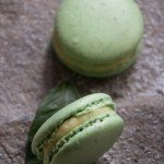Įkaitiname orkaitę iki 140-150 C ir kepame 10 minučių, tuomet atidarome orkaitės dureles, apsukame kepimo skardą (kad išleistume drėgmę iš orkaitės) ir kepame dar 7-8 min. Kad įsitikintume, jog macarons iškepę, atsargiai pabandome pakelti vieną iš jų – jei atsikelia visas, tuomet jau iškepęs, o jei ne – tuomet paliekame dar keletui minučių. Atvėsiname.
